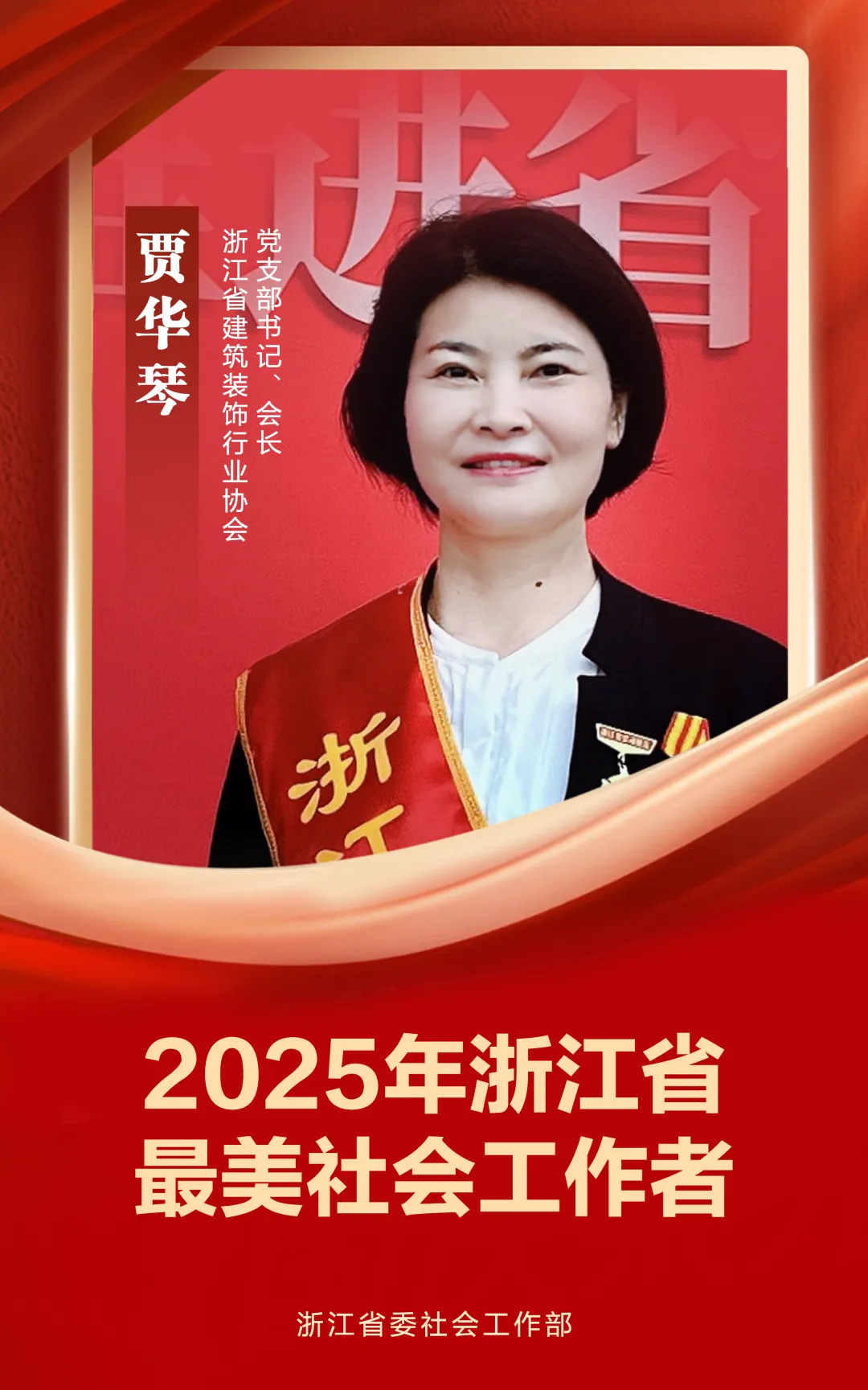 浙江省建筑装饰行业协会为5A级社会组织,作为党支部书记、会长,浙江省劳动模范、省“五一劳动奖章”获得者,贾华琴把“真诚服务、开拓进取”写进每一天,把“和美”装进千万家。