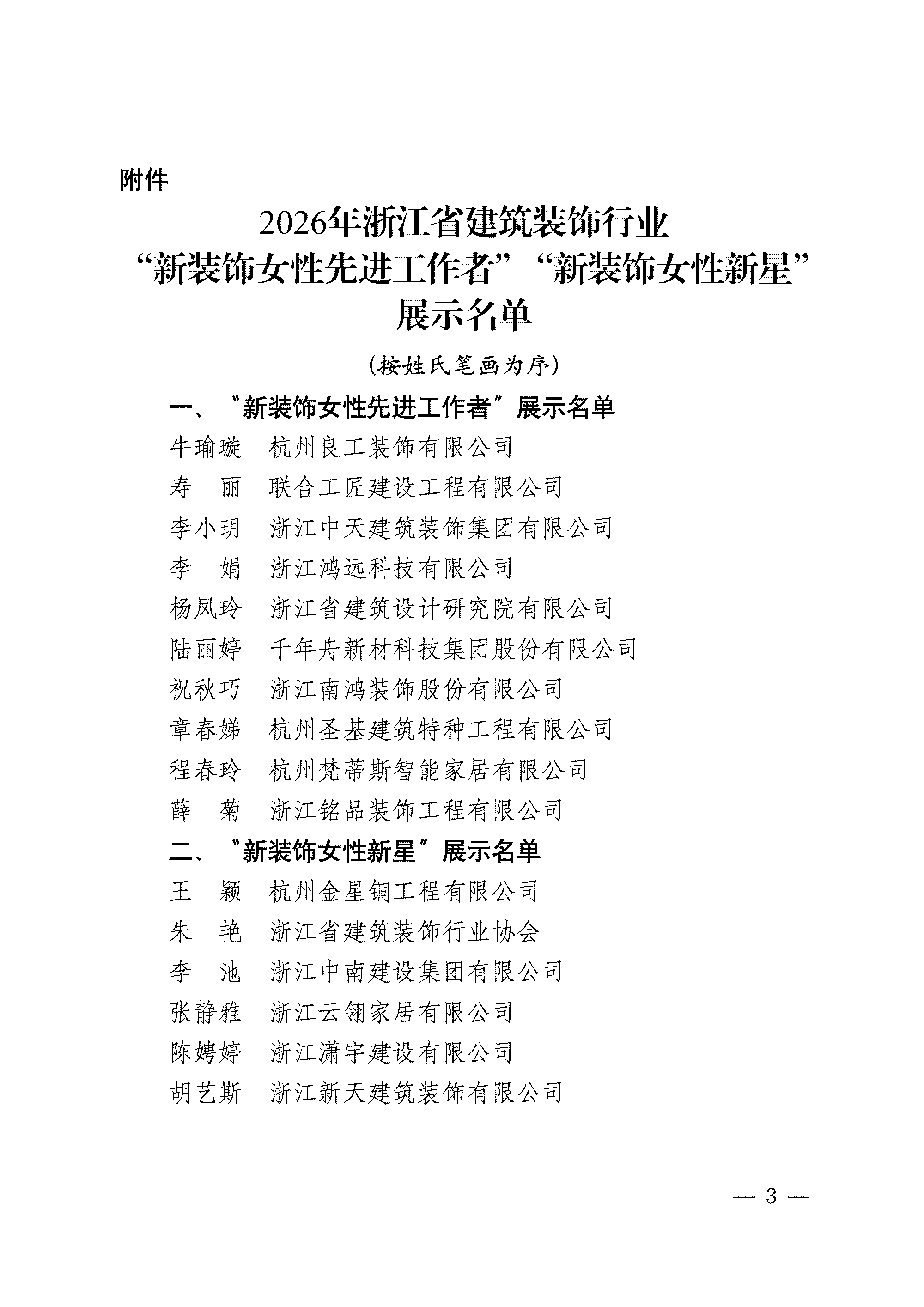 关于公布2026年浙江省建筑装饰行业“新装饰女性先进工作者”“新装饰女性新星”展示活动名单的决定